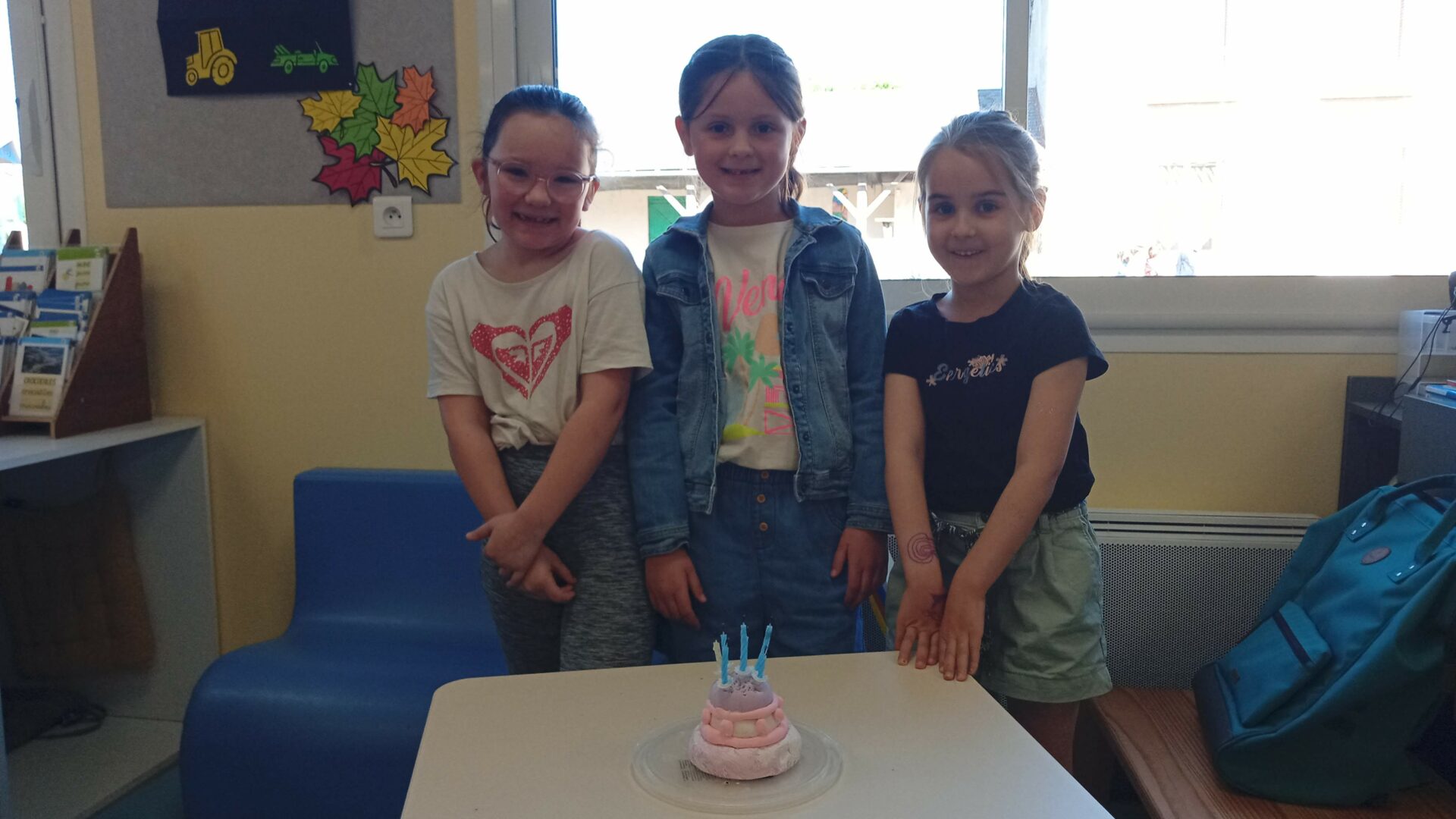 / Classe 2 / Par Stéphanie Rautureau Les anniversaires du mois d'Avril Mardi 29 avril, nous avons fêté les anniversaires du mois. Philippine a eu 7 ans le 3 avril, Elsa a eu 7 ans le 12 avril et Ninon a eu 6 ans le 14 avril. Pour le goûter, elles ont préparé des gâteaux marbrés. Quel régal !